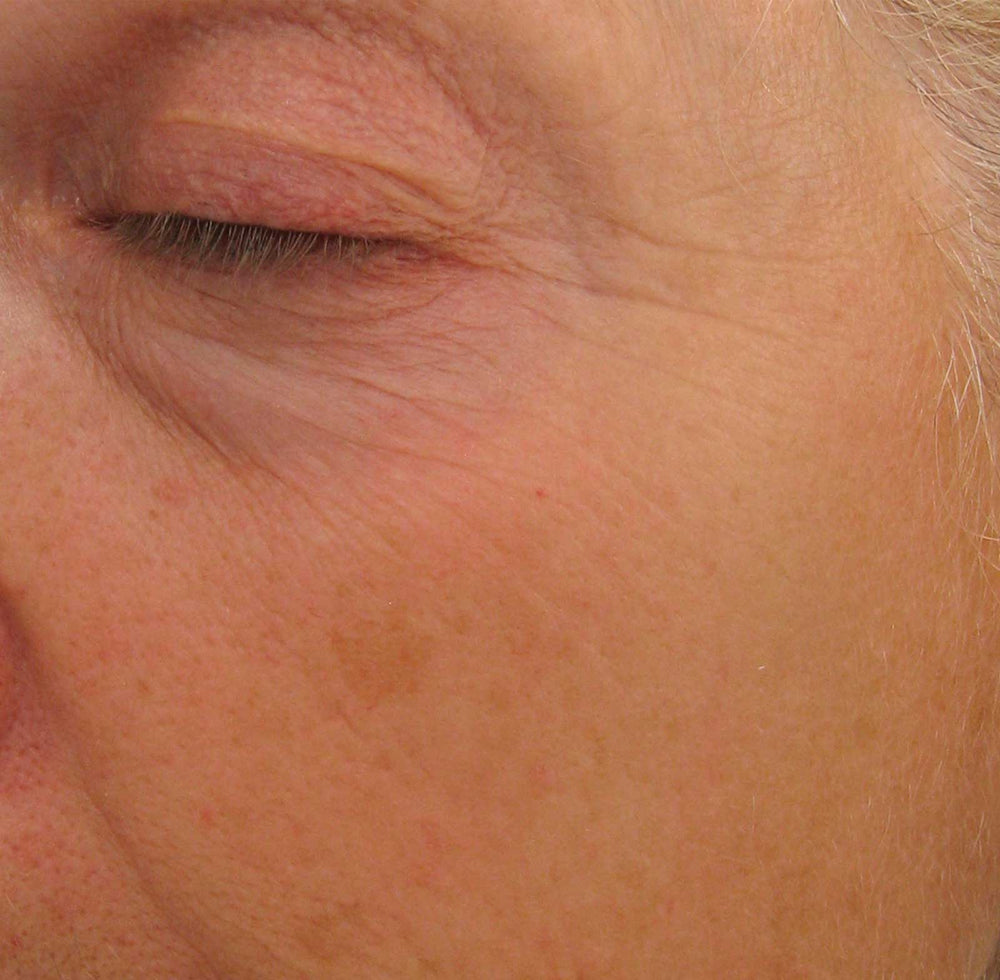 Start at inner corner underneath your eye, applying small dots in a semi-circle.